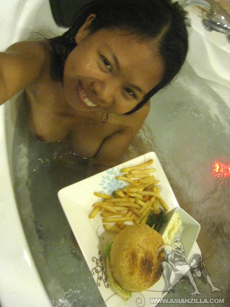 Selfshots of sexy Pinay amateur Nicole after eating dinner and later in comfort room and in bathtub.